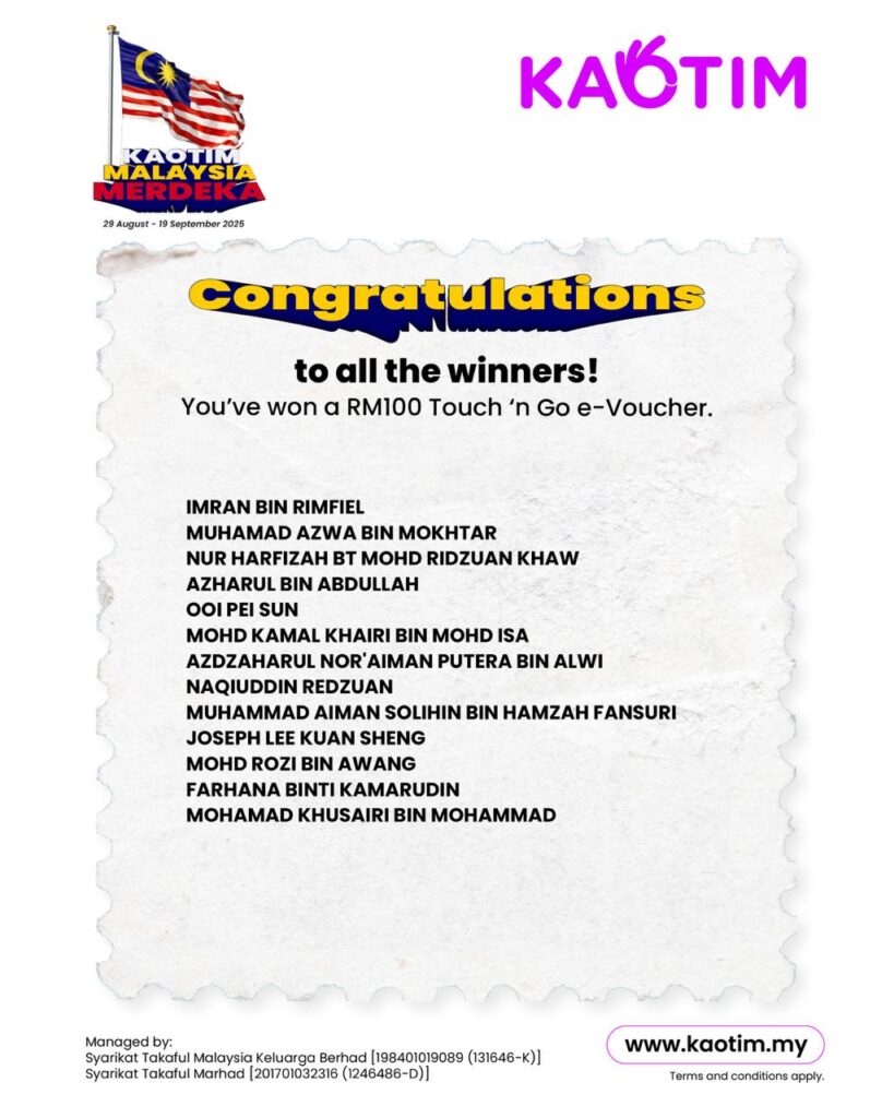 68 Winners x RM100 Touch ‘n Go e-Voucher